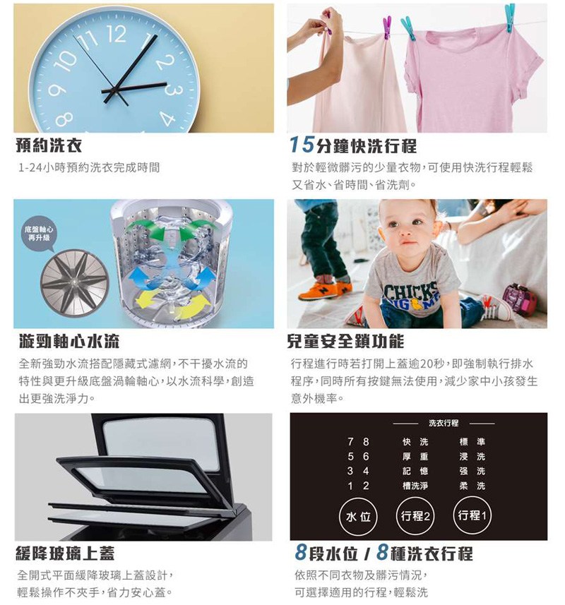 ◆8段水位 、 8種洗衣行程