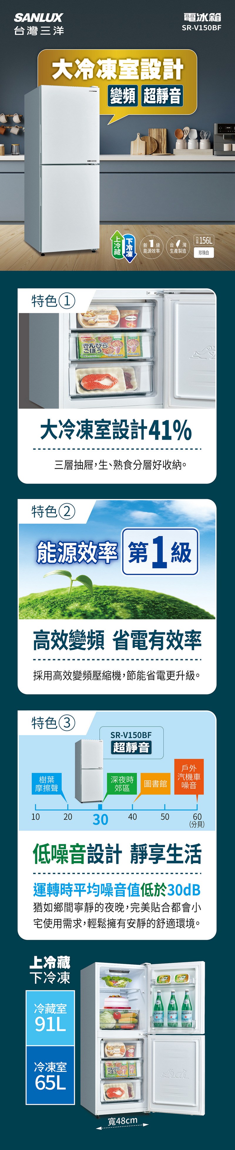SANLUX台灣三洋156公升一級變頻雙門電冰箱 SR-V150BF~含拆箱定位+舊機回收