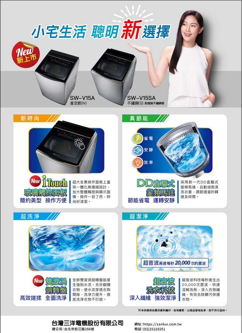 SANLUX台灣三洋15公斤DD直流變頻超音波洗衣機 SW-V15SA~含基本安裝+舊機回收