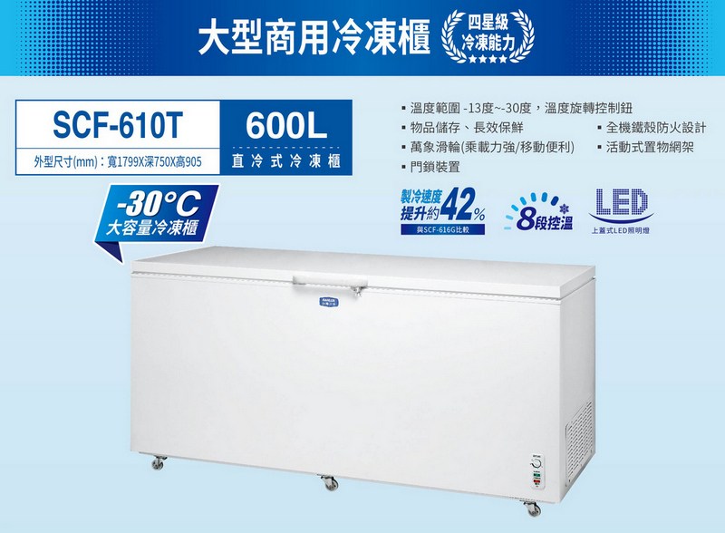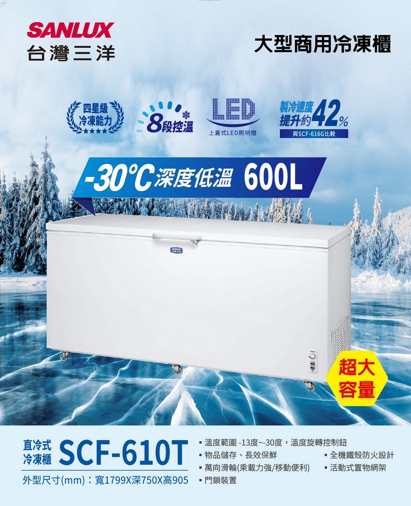 SANLUX台灣三洋600公升-30度超低溫上掀直冷式冷凍櫃 SCF-610T~含拆箱定位+舊機回收