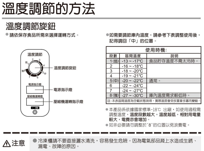◆溫度範圍 -13度~ -30度,溫度旋轉控制鈕
