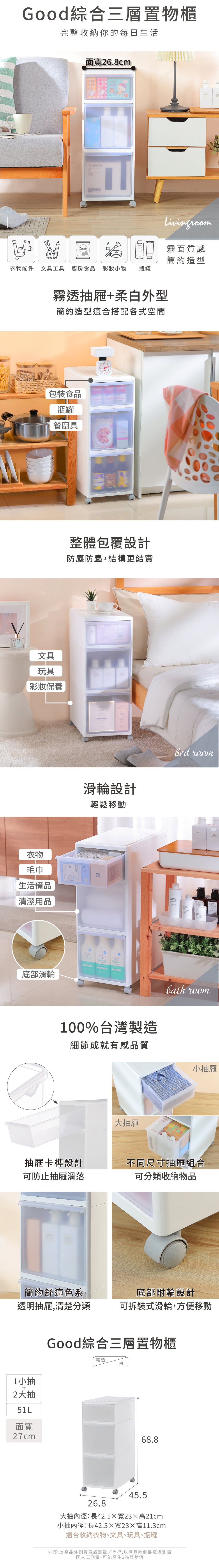 Good綜合三層置物櫃 附輪 N-3201