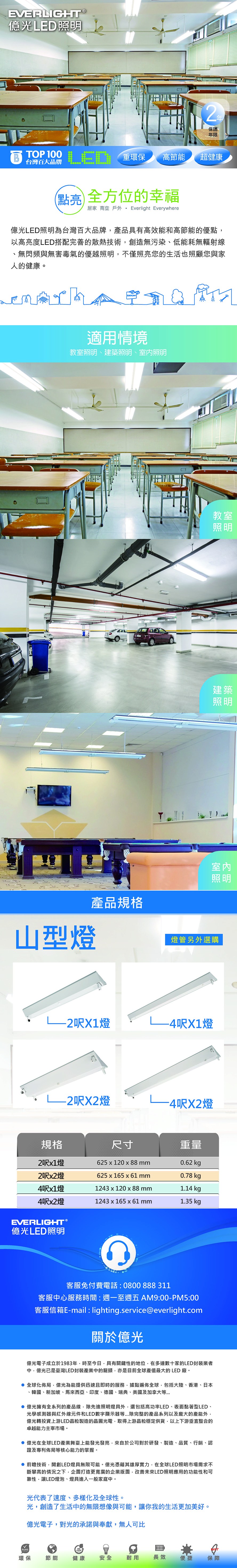億光 20W 4呎 雙管 山型燈(不含燈管)