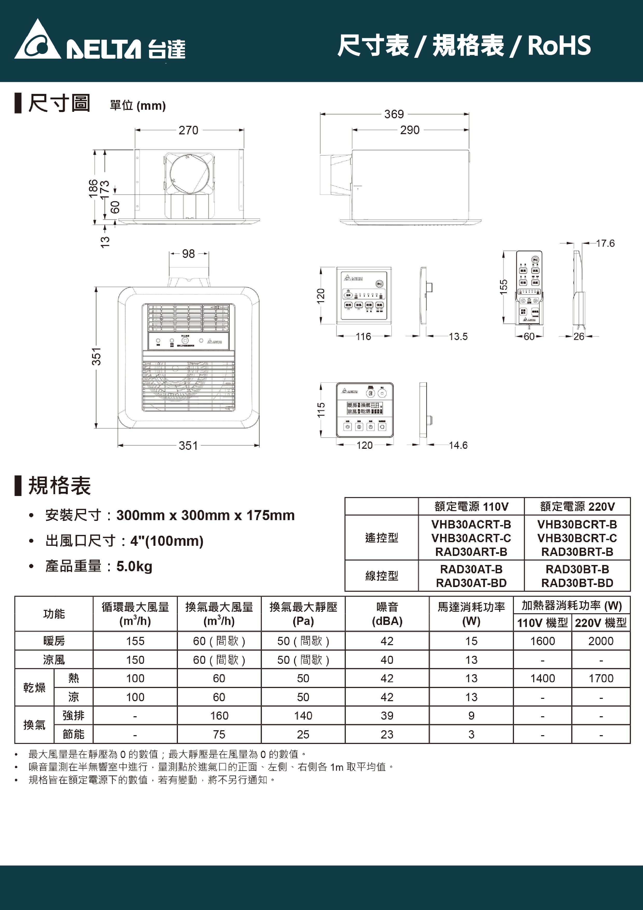 台達電子 豪華300 多功能 暖風機 九合一 線控型 110V VHB30ACMT-AD 桃竹苗提供安裝服務