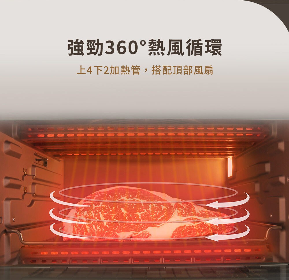 ◆上4下2加熱管,搭配頂部風扇,強勁360度熱風循環。