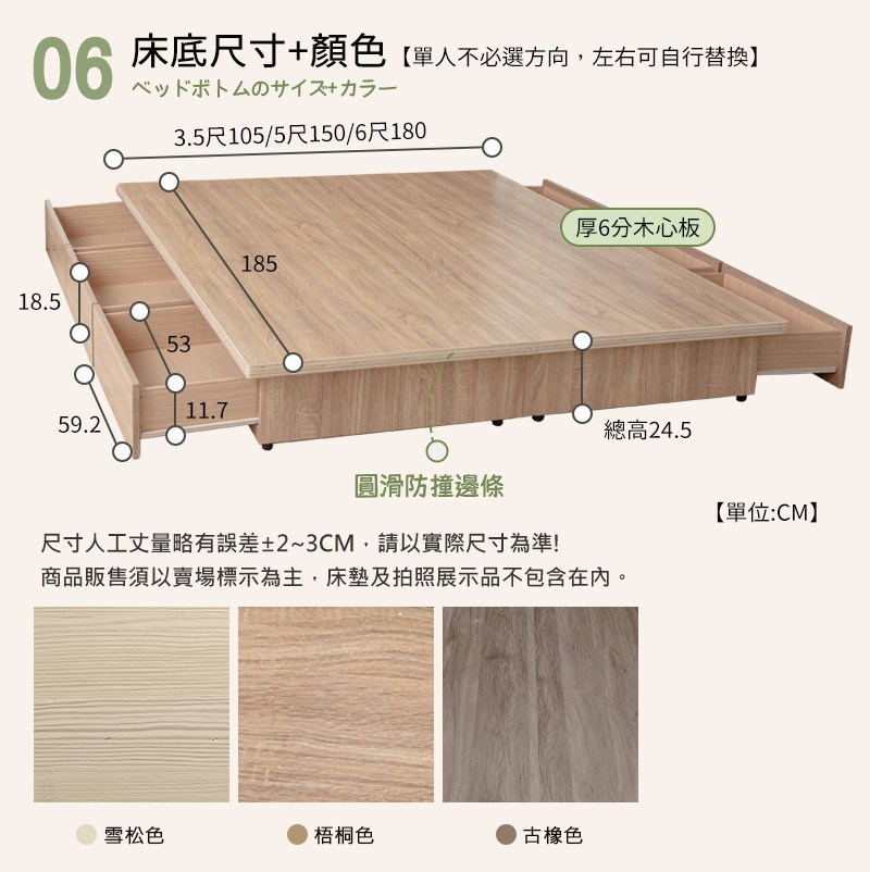6.尺寸為師傅手工製作人工丈量略有誤差值±3cm,請以實品為主。