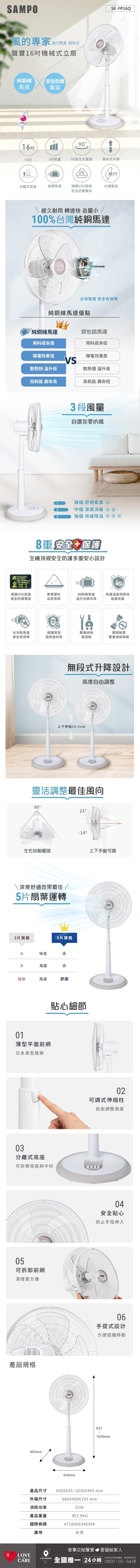 SAMPO聲寶 16吋機械式立扇 SK-FP16Q