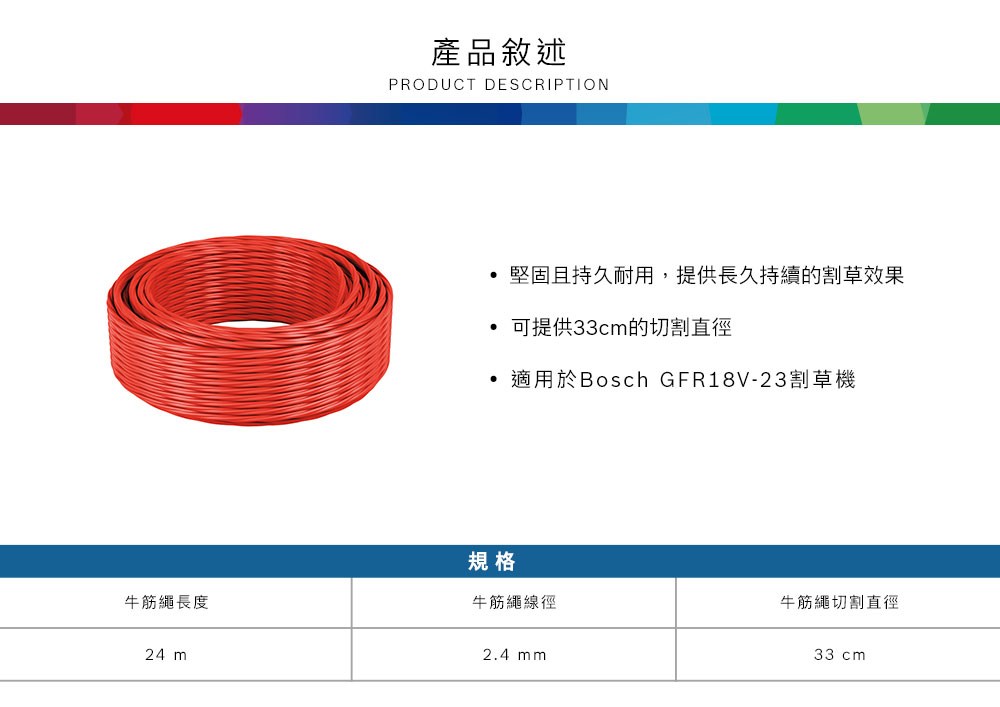 BOSCH 割草機牛筋繩 24 m (2.4 mm)