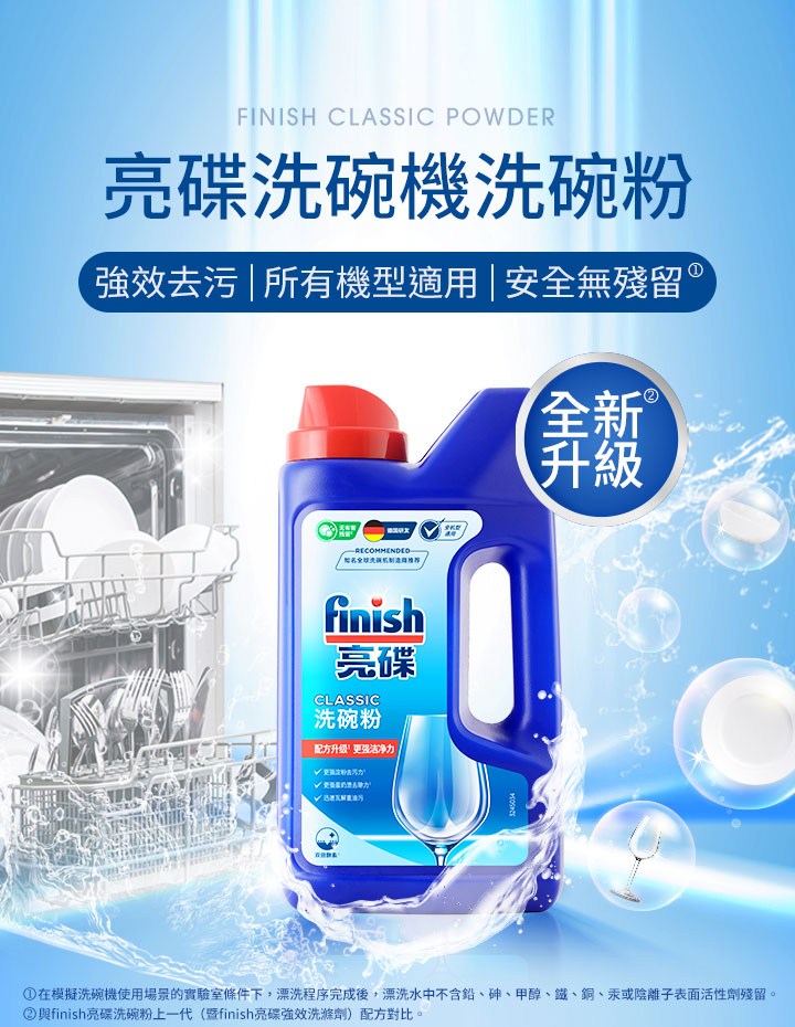 finish亮碟 洗碗機專用 強力洗滌粉劑1kg x2入