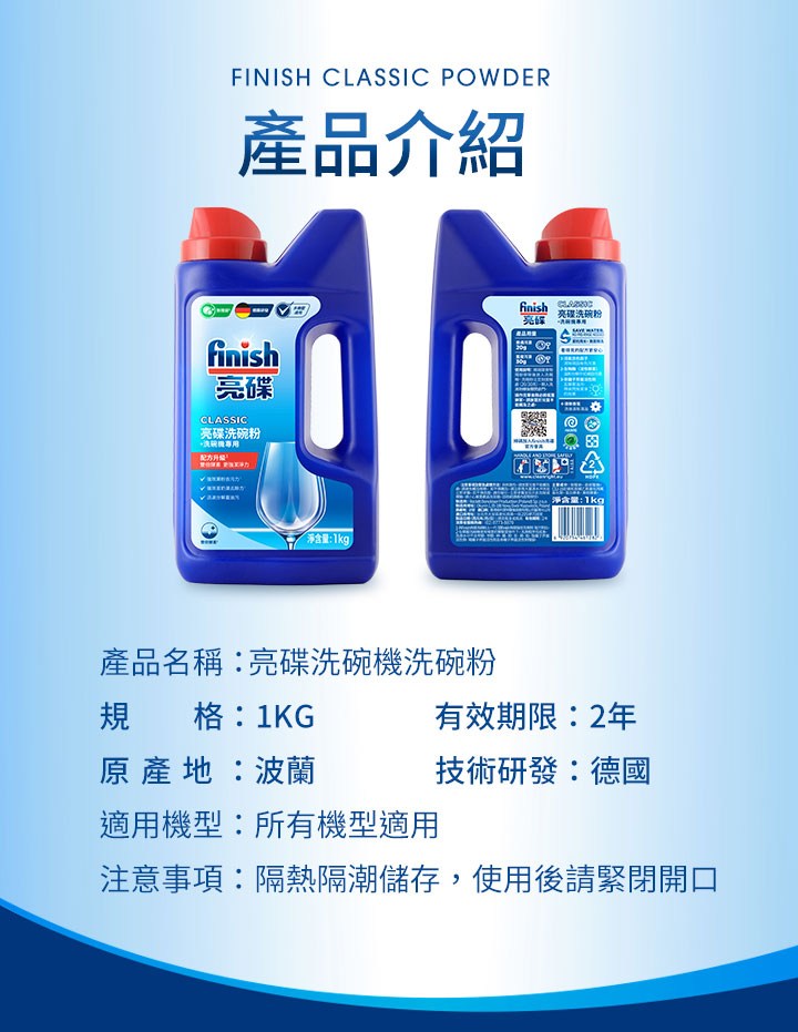 【finish亮碟】洗碗機洗碗粉1kg (洗滌劑/洗碗機粉/洗碗機清潔劑/洗奶瓶/去油污/洗碗機專用)|官方直營