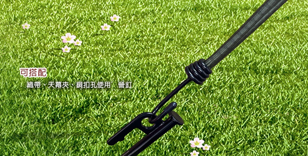 ◆ 彈性掛勾,可快速輔助固定帳篷,拉好營繩。
