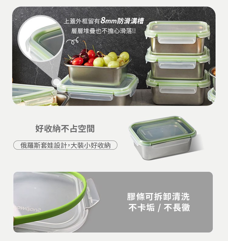 【美國MotherGoose鵝媽媽】醫療級316不鏽鋼可微波保鮮盒750ml