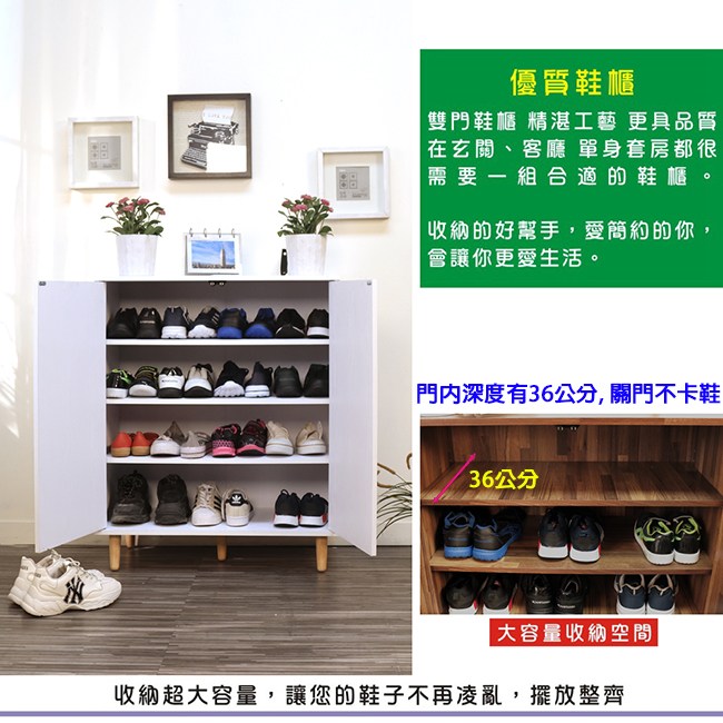 現在家中都小家庭居多,玄關空間不大,來一組寬80/高96/深40公分鞋櫃,出門或回家時,可隨手將包包或手中之物放在櫃面;也可2座堆疊,輕鬆增加收納量;深度足夠,大鞋碼的鞋不用浪費空間斜放。採用E1低甲醛塑合板材,安心使用;木紋紋路美觀又實用,容易清潔保持乾淨!!雙門採用磁鐵吸力設計,輕鬆按壓開關,無把手凸出最省空間!!作鞋櫃或雜物收納櫃都理想。