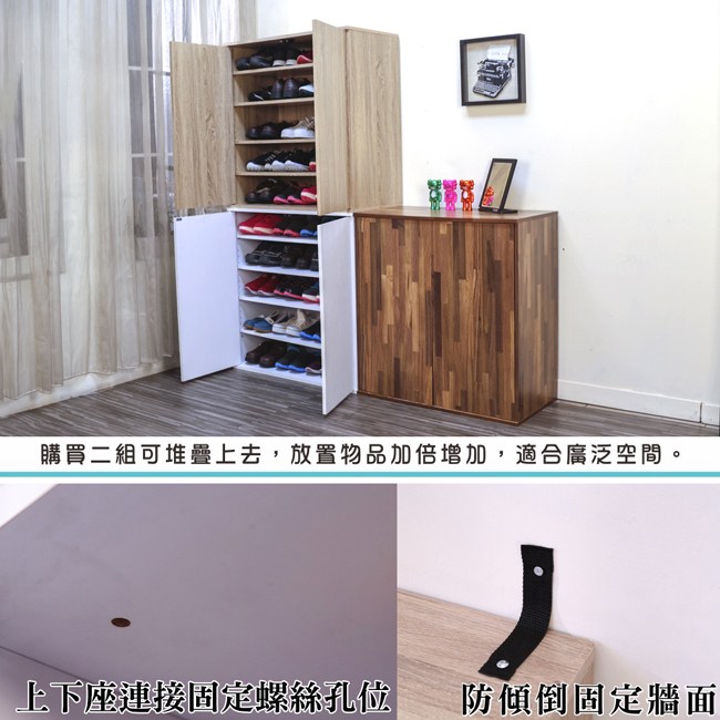 現在家中都小家庭居多,玄關空間不大,來一組寬80/深40公分鞋櫃,出門或回家時,可隨手將包包或手中之物放在櫃面;也可2座堆疊,輕鬆增加收納量;深度足夠,大鞋碼的鞋不用浪費空間斜放。採用E1低甲醛塑合板材,安心使用;木紋紋路美觀又實用,容易清潔保持乾淨!!雙門採用磁鐵吸力設計,輕鬆按壓開關,無把手凸出最省空間!!作鞋櫃或雜物收納櫃都理想。