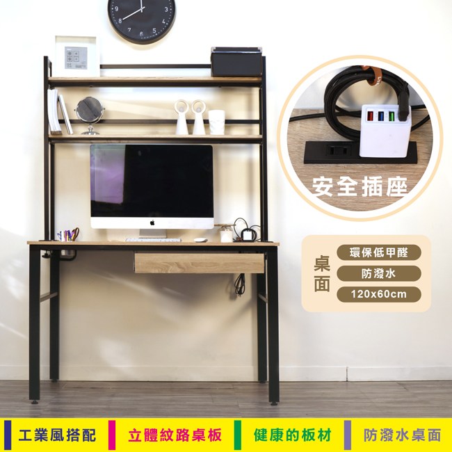 此款是特別針對小坪數房間所設計出的《BuyJM》防潑水工作桌/電腦桌,整個造型為防潑水PVC立體紋路貼皮桌面,寬120公分桌面設計,大小適中,桌板安全無銳角,使用空間更多元,擺放電腦後,還有桌面空間可供閱讀、寫作使用,桌子下也有空間可隨意收納擺放電腦主機等等,空間隨你需求輕鬆變。現在更有升級版,增加上層層架,可當書架使用,收納書本、事務機等用品,收納功能更加分。桌面板材質使用歐盟標準E1等級木板,讓消費者遠離甲醛,外型巧妙將自然與工業風鐵管元素結合,沒有突兀的不協調感,反而創造出空間的活力自信!實用性超高,經濟又實惠!實品超精緻,質感極佳,使用超方便,真的非常的推薦哦!