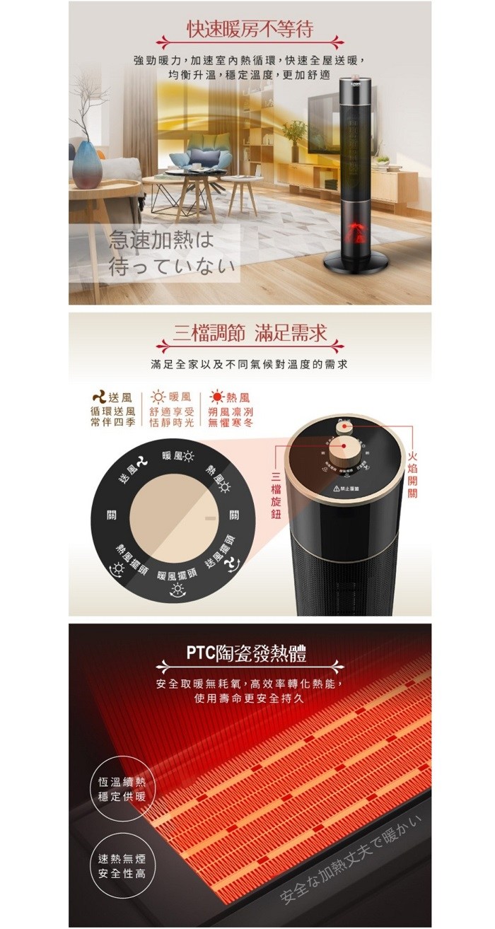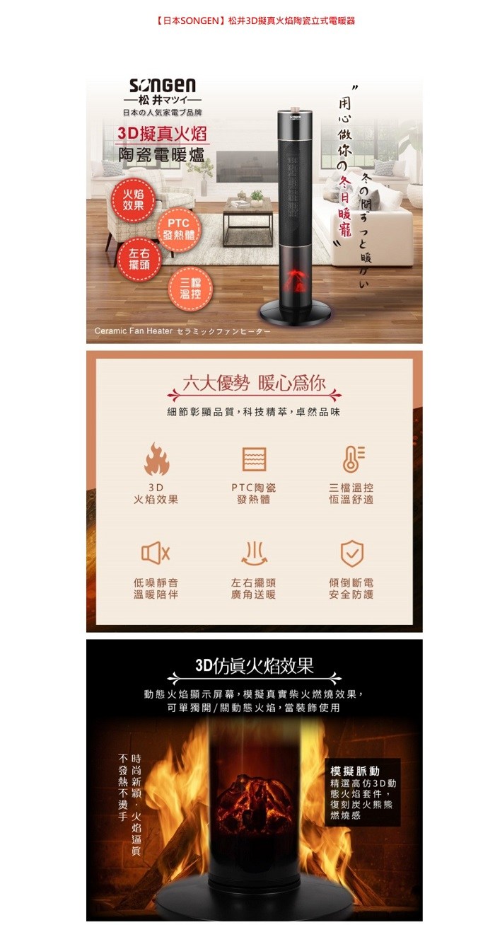 日本SONGEN松井 日系3D擬真火焰PTC陶瓷立式電暖爐/暖氣機/電暖器 SG-2701PTC