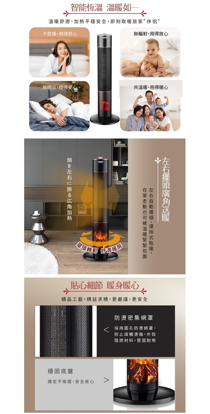 【TECO東元】3D擬真火焰石墨烯陶瓷電暖器/暖氣機/電暖爐(XYFYN3006CBB)