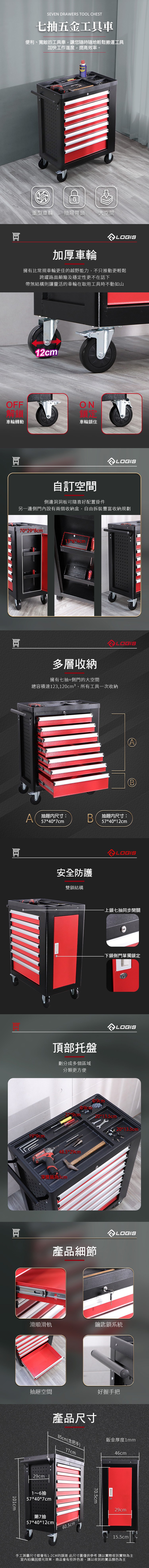 LOGIS 加厚重型七抽+側櫃 五金工具車 【TZ7R】