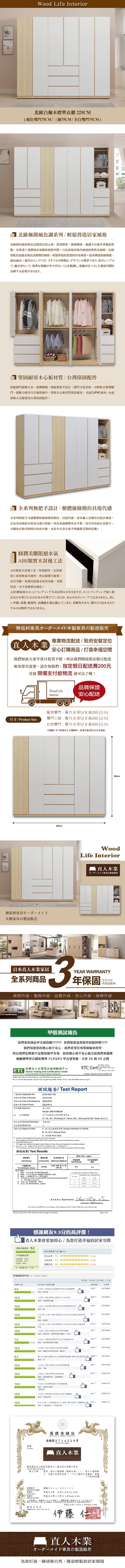 hoi!林氏木業現代簡約滑門1.8M衣櫃組合 JC3D-A+JC6D邊櫃