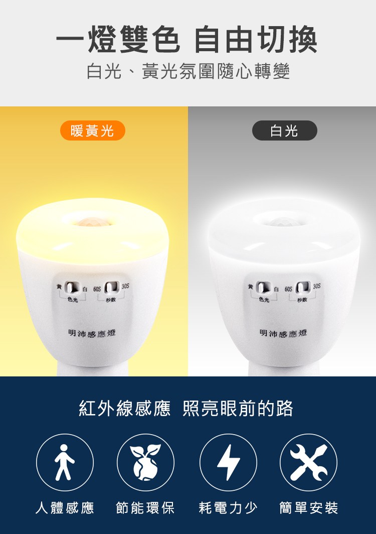 4W LED 雙色光紅外線感應燈(可切換黃白光/2P插頭彎管式)