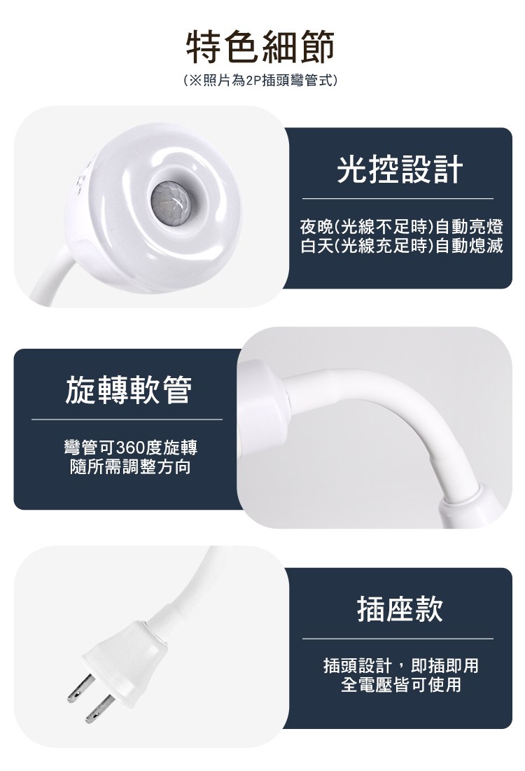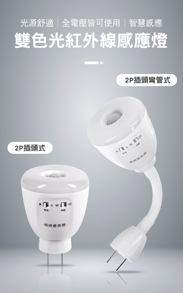 4W LED 雙色光紅外線感應燈2入(可切換黃白光/2P插頭彎管式)