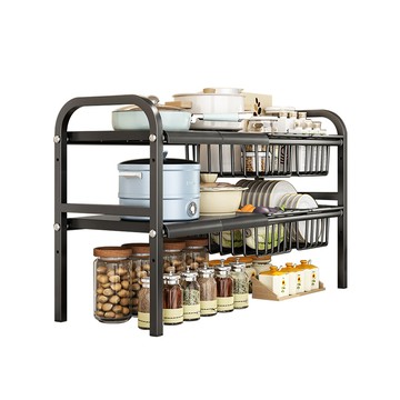 立刻下載【居家cheaper】可調式下水槽伸縮置物架/流理臺置物架碳鋼黑