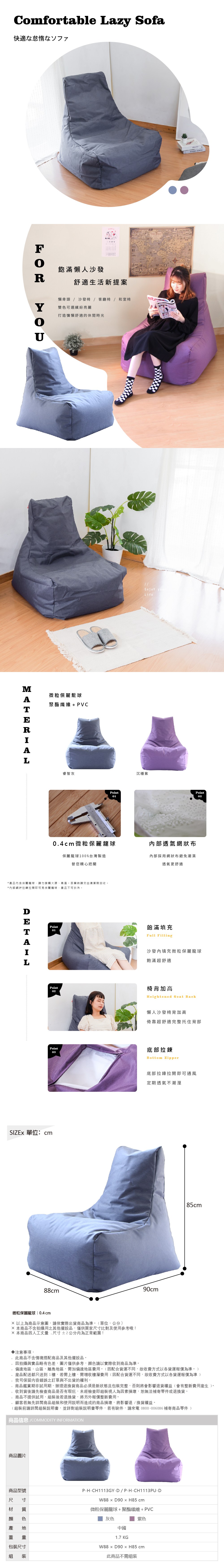 【RICHOME】威爾高背懶人沙發紫色