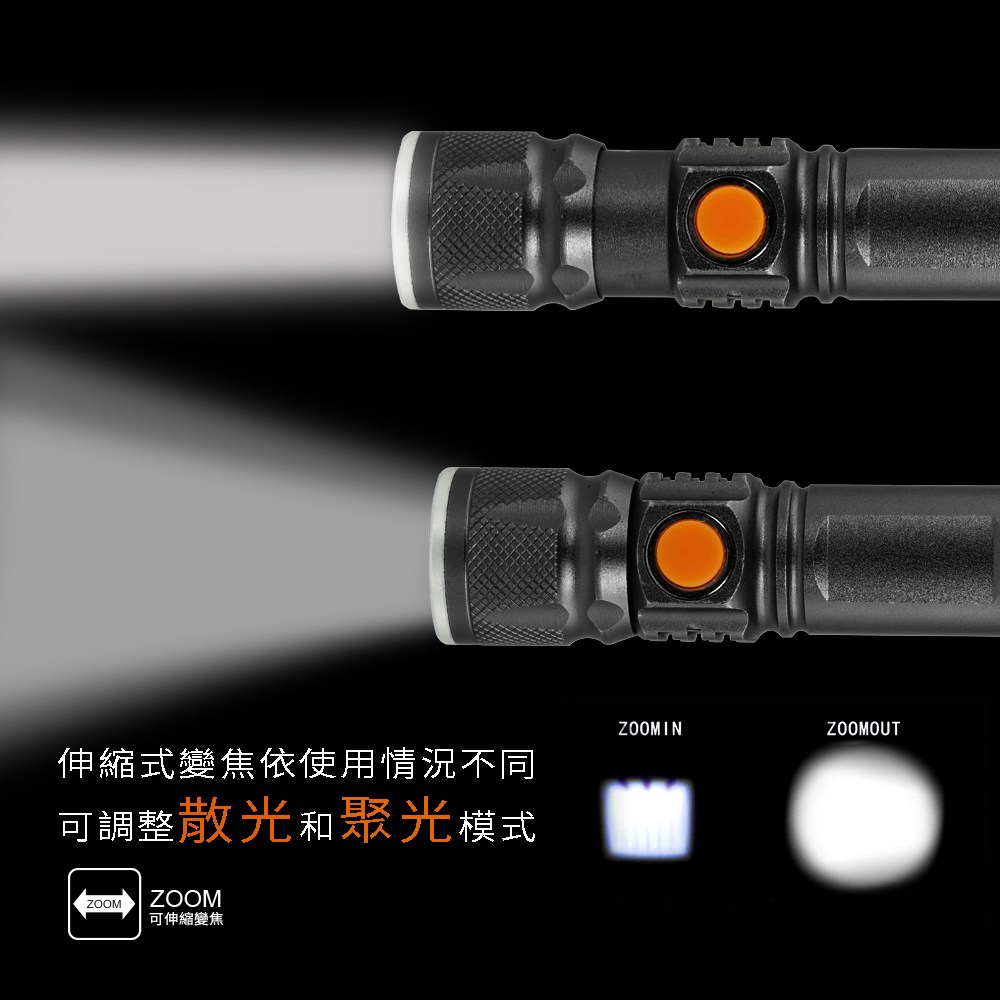 COB變焦手電筒 LED爆亮強光二用手電筒 露營燈警示戶外登山夜遊照明