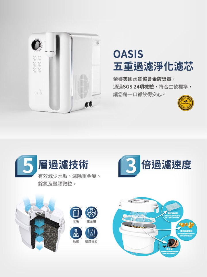 【美國OASIS】桌上型mini質感瞬熱雙溫飲水機(免安裝 抑菌水箱 3秒瞬熱)