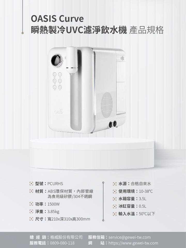 【福利品】【美國OASIS】Curve瞬熱製冷UVC濾淨飲水機(美國水質協會認證)