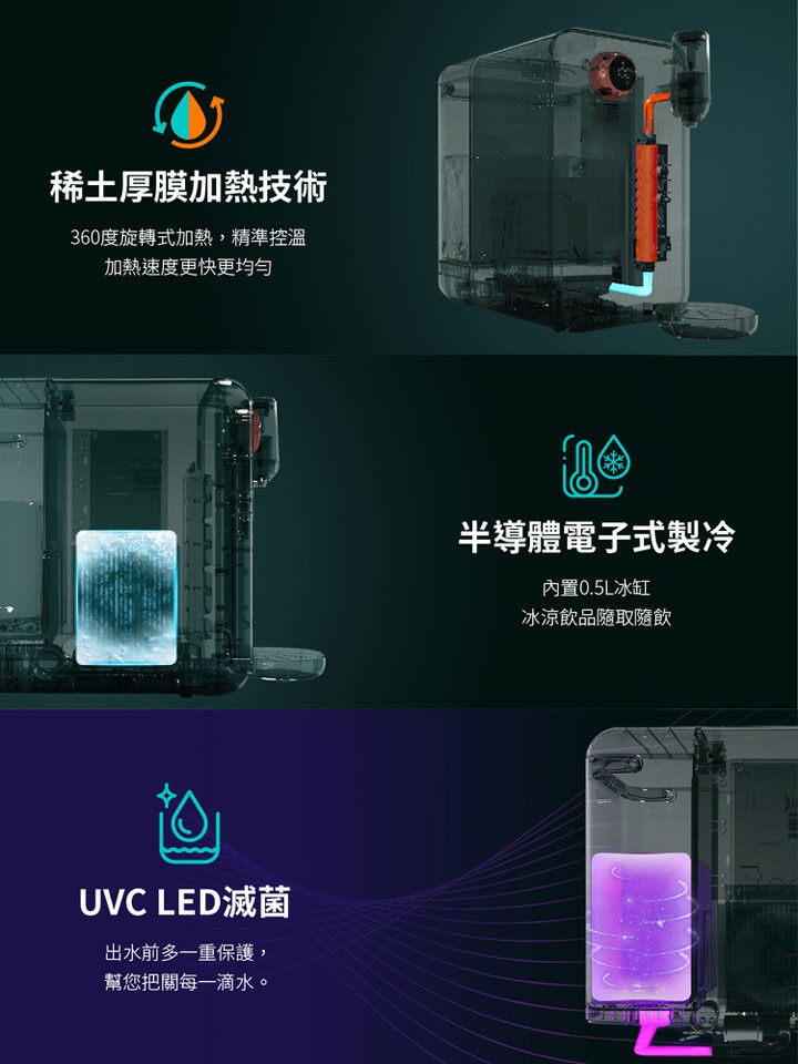 賀眾牌 沁涼極淨冰熱飲水機UR-3502AW-1(免安裝/冰溫熱/雙UV殺菌/RO)_廠商直送