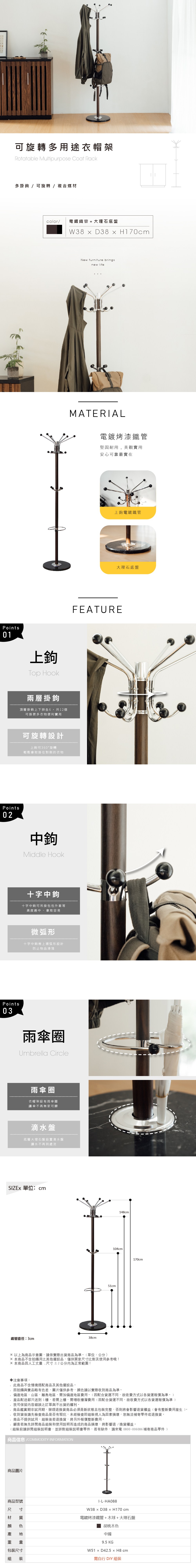 【RICHOME】 蕾莉衣帽架胡桃木色