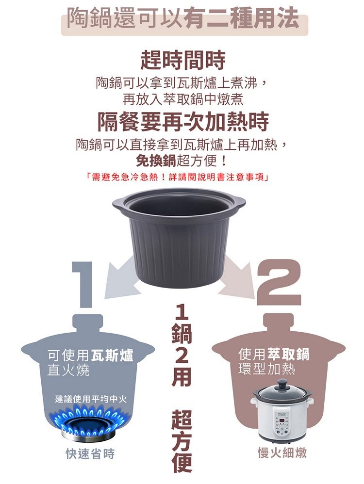 ◆ 遠紅外線陶鍋,可直火加熱,一鍋兩用超方便