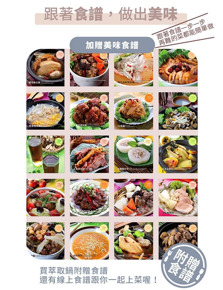 ◎ 商品內容:主機、陶鍋、玻璃蓋、食譜、保固卡、說明書