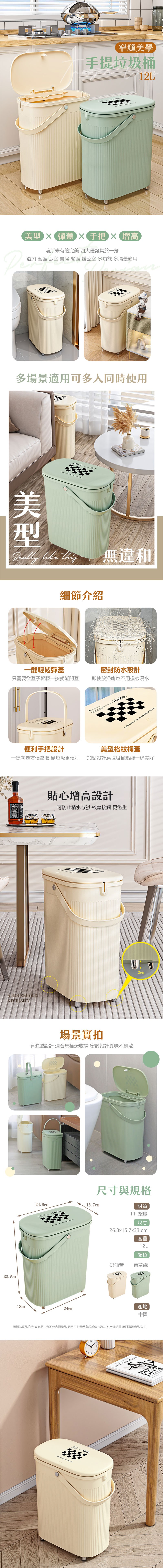 【品樂生活】12L窄縫美學手提垃圾桶/水桶/廁所垃圾桶/辦公室垃圾桶/廚餘桶/寵物飼料桶