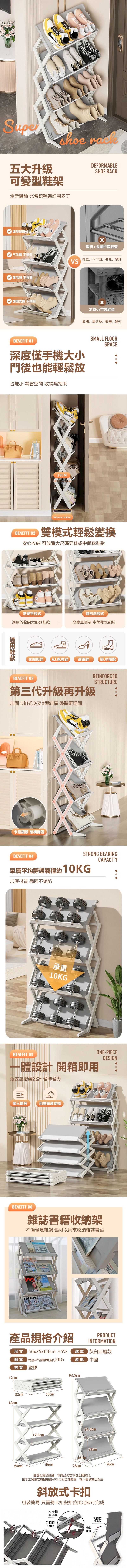 【居家cheaper】第三代雙模式免組裝四層摺疊鞋架|雜誌架四層款