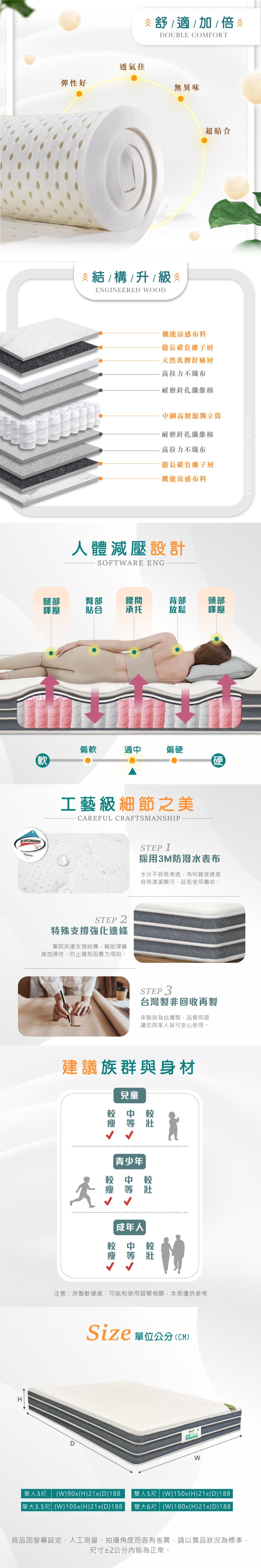 比佛利涼感釋壓獨立筒床墊3562單人加大
