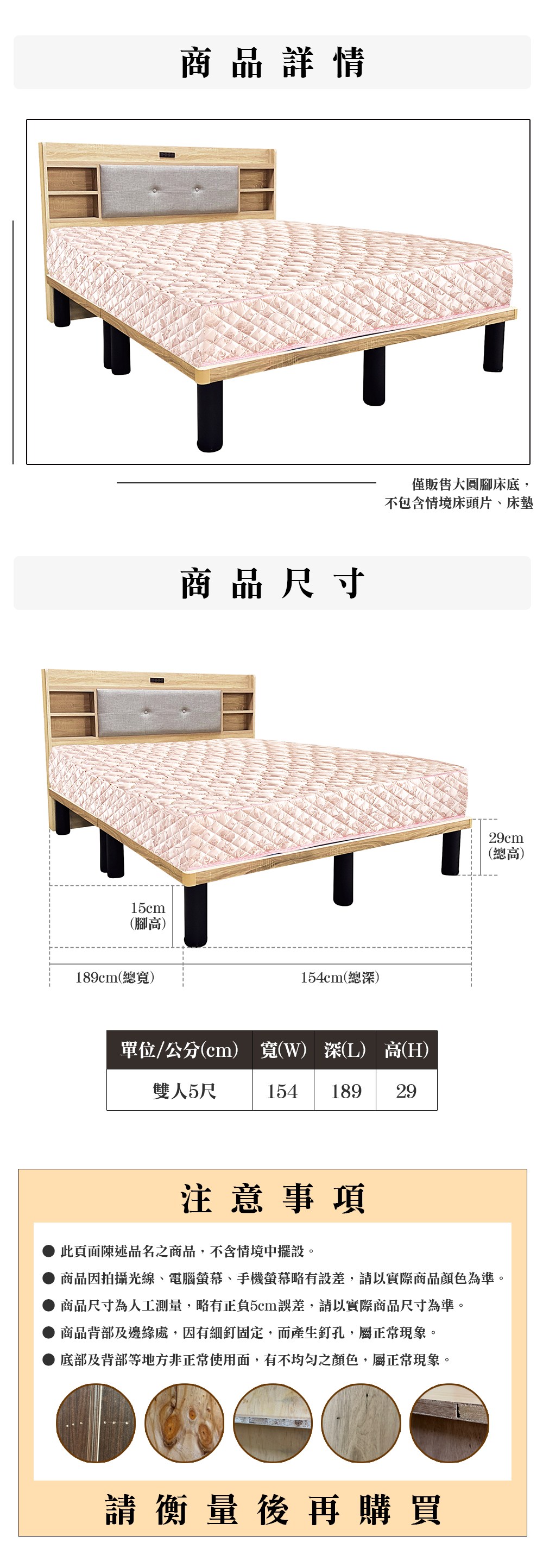 源氏木語西雅圖橡木原木色斜靠雙人5尺150x190夜燈低舖床架 Y90B28 (H014324397)
