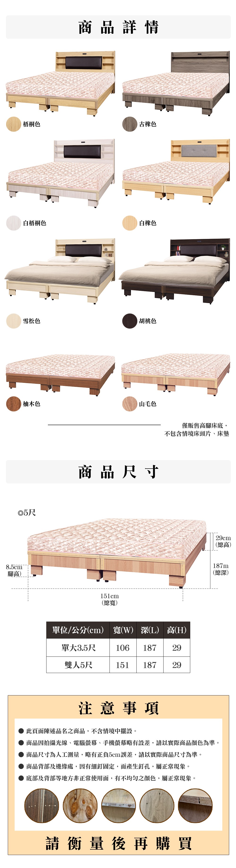 集成木皮5尺高腳床底