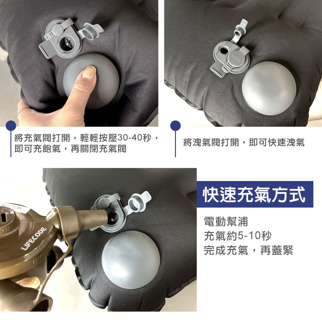 ◆ 按壓充氣圓頭1分半即可完成充氣