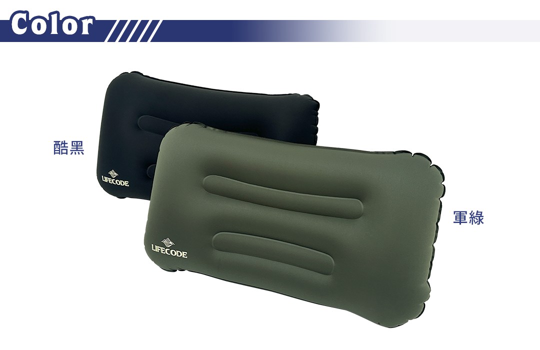 【LIFECODE】小二《人體工學》手壓充氣枕-軍綠/酷黑(2入) 15040124/8-02
