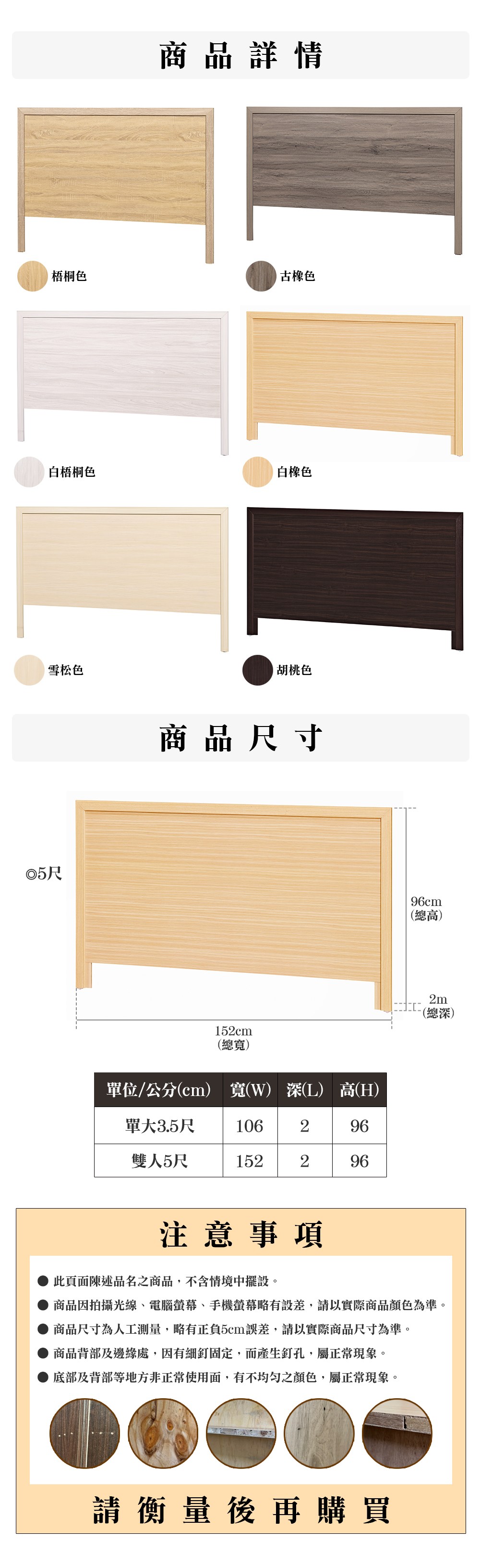 【多瓦娜】皮克5尺二件式房間組(床片+床底)/三色古橡