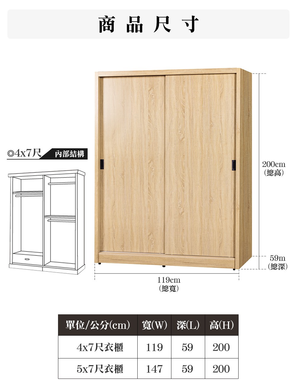 薩斯4X7尺拉門木質收納衣櫃/衣櫥(4開3抽加側邊櫃/2色任選)北歐橡木
