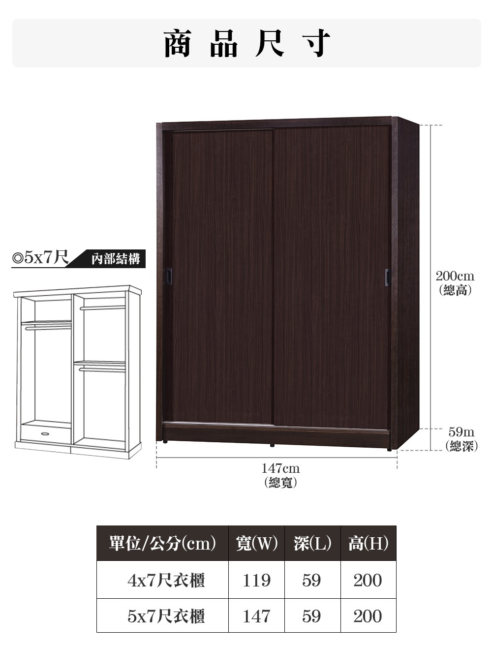AS雅司中和5×7尺木心板二拉衣櫥-145.5*59*194cm-兩色可選
