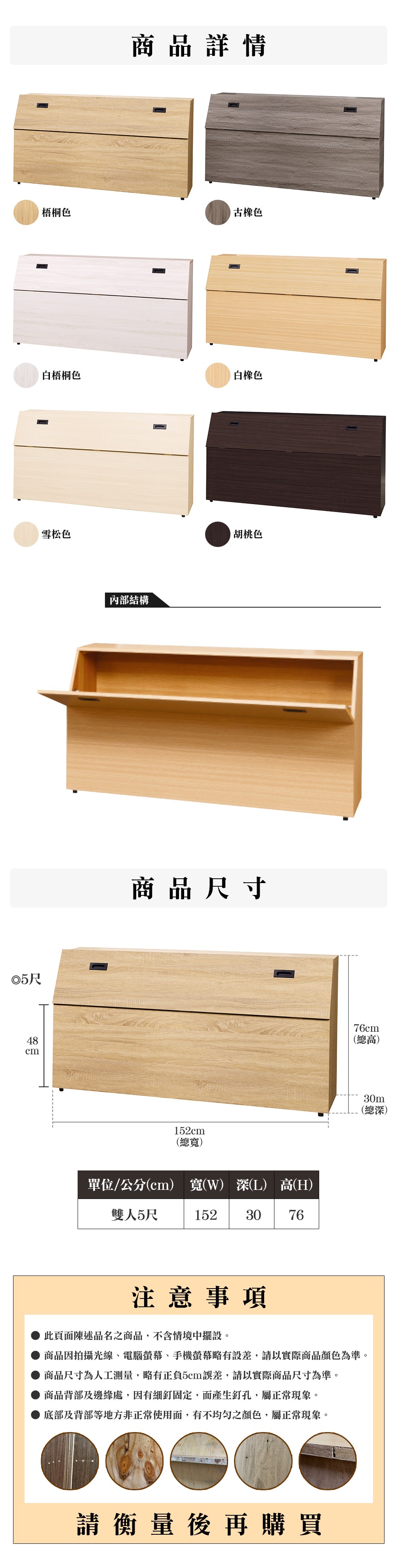 【顛覆設計】簡約收納床頭箱(雙人5尺)白橡色