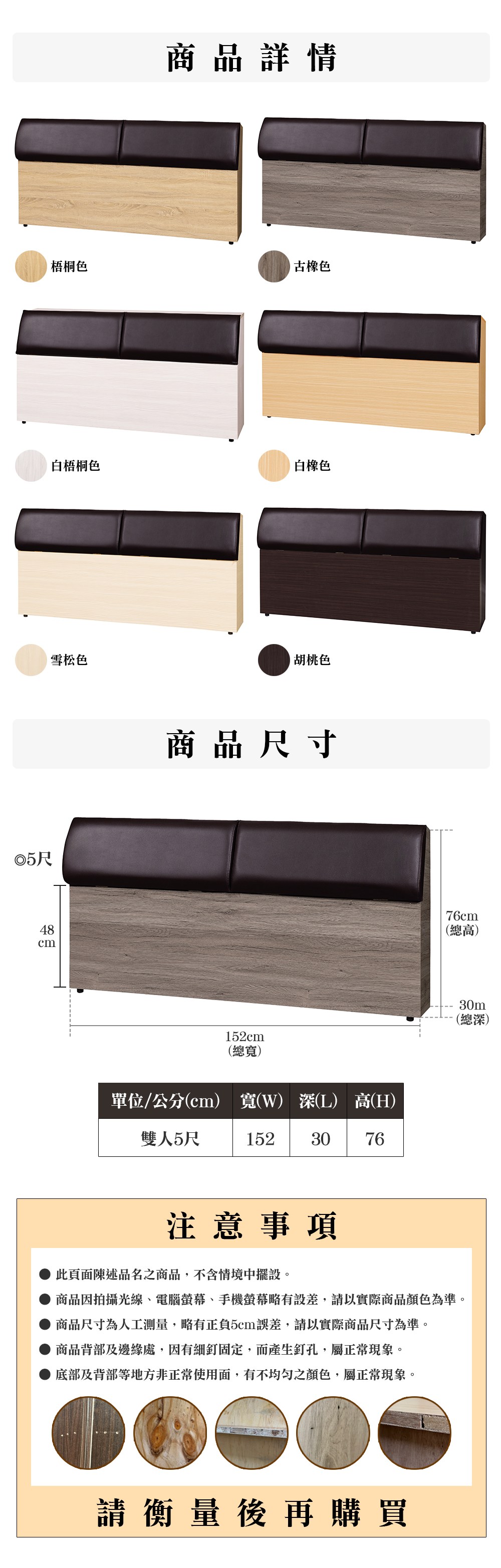 【顛覆設計】簡約靠枕收納床頭箱(雙人5尺)白梧桐色