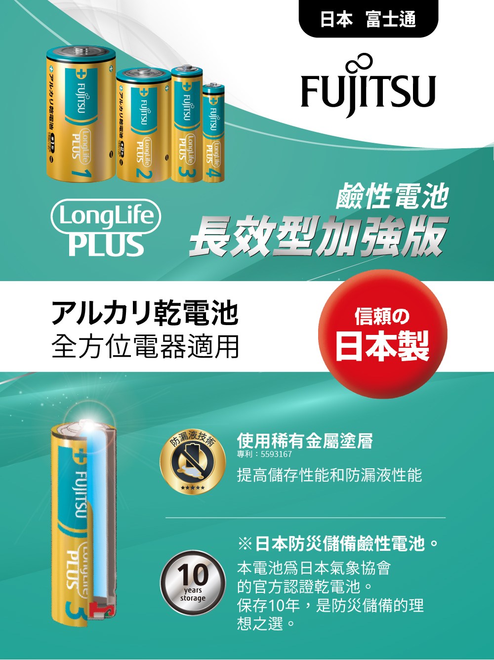 富士通 長效型 4號鹼性電池AAA 日本製 100入