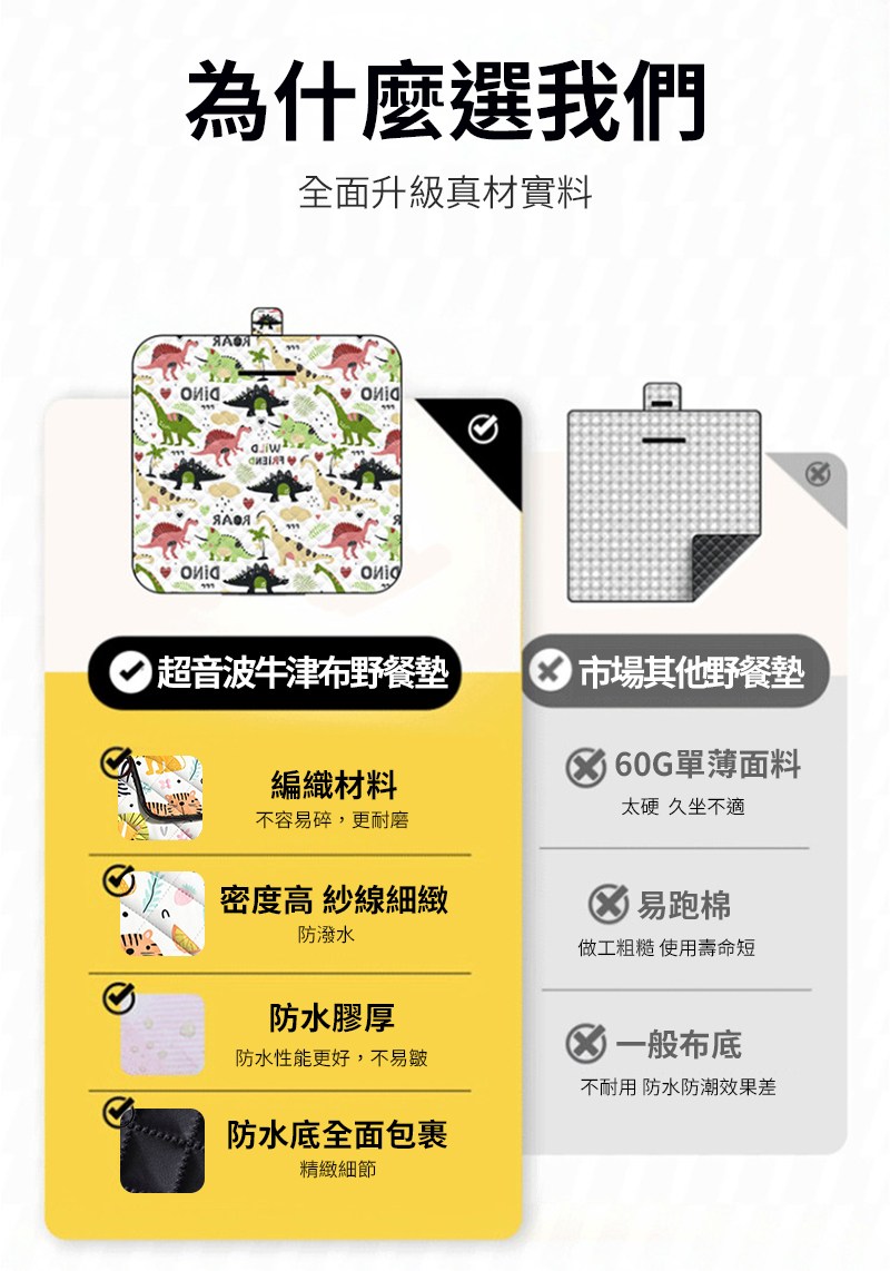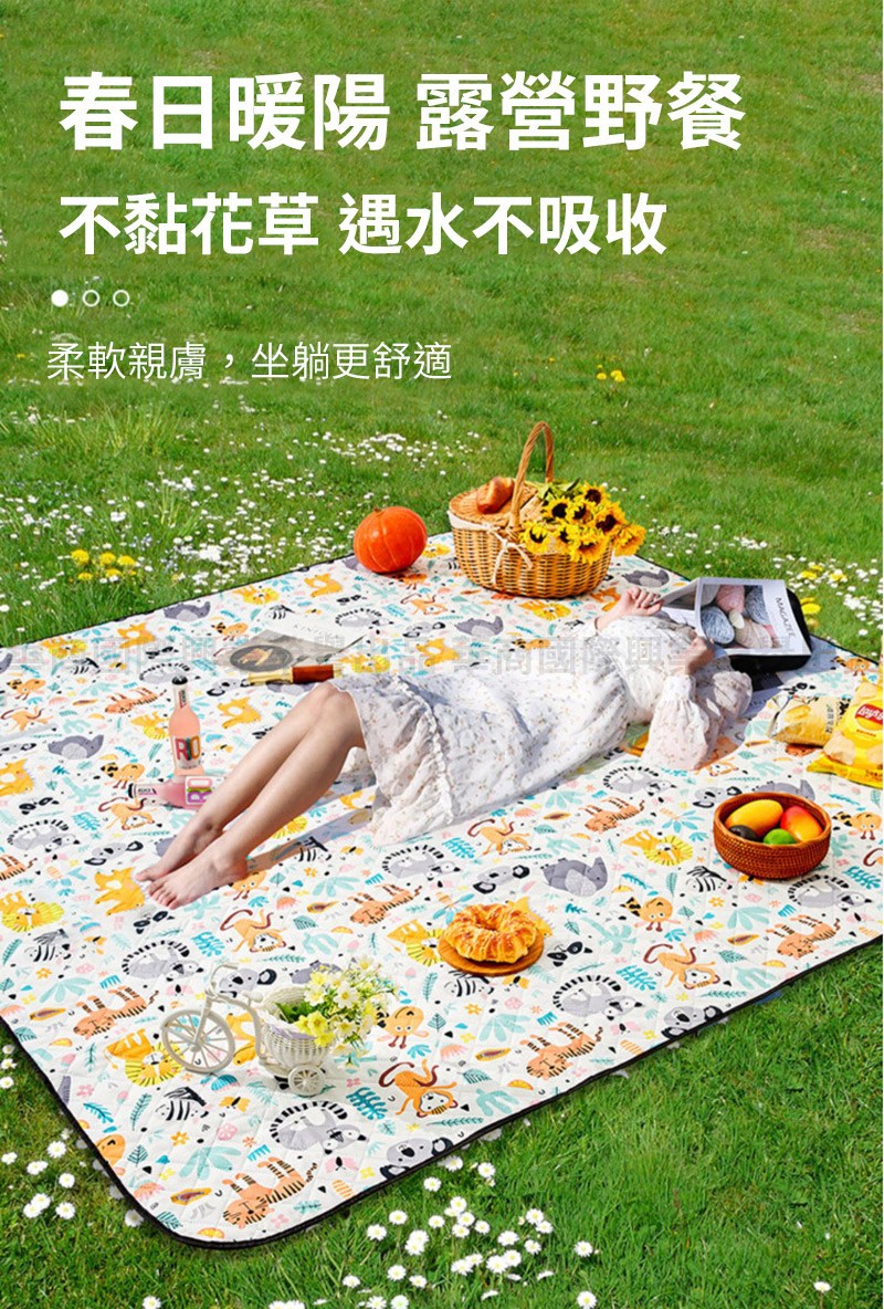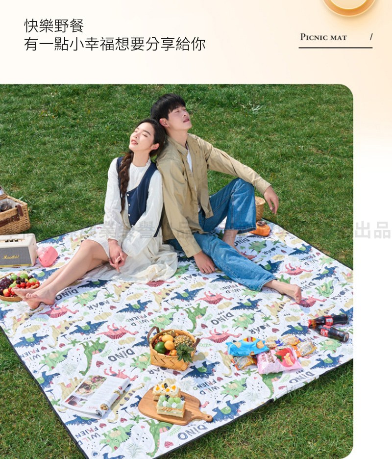 【時尚玩家】加大手繪創意野餐墊 超音波科技布料防水野餐墊總代理正品-加大200x150cm(沙灘墊 地墊 爬行墊)侏儸紀恐龍
