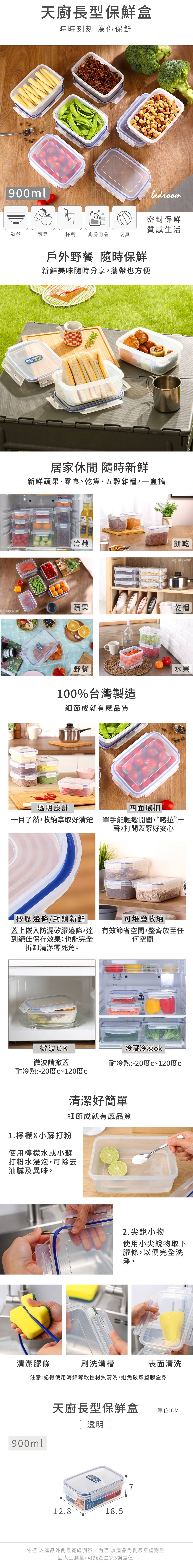 天廚長型保鮮盒450ml 台灣製 密封盒 保鮮罐 密封罐 廚房收納盒 食物收納 塑膠盒 野餐盒 水果盒 生菜盒 飯菜盒
