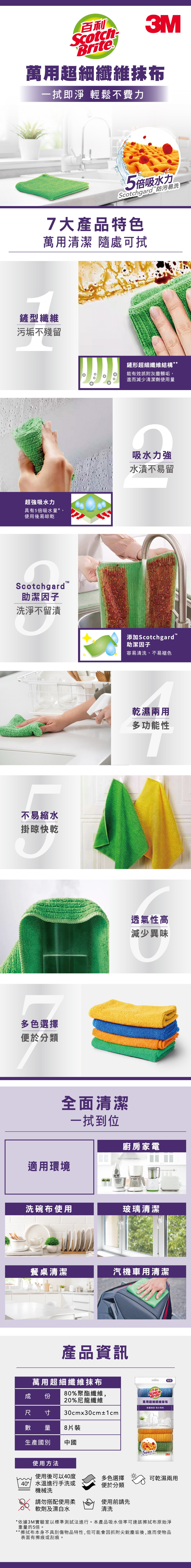 3M Scotch-Brite 百利 萬用超細纖維抹布 8條 30 x 30cm 1包